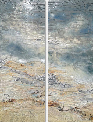 Emergence #1-# 2 , 36" x 72", encaustic, mixed media and vintage found objects on birch